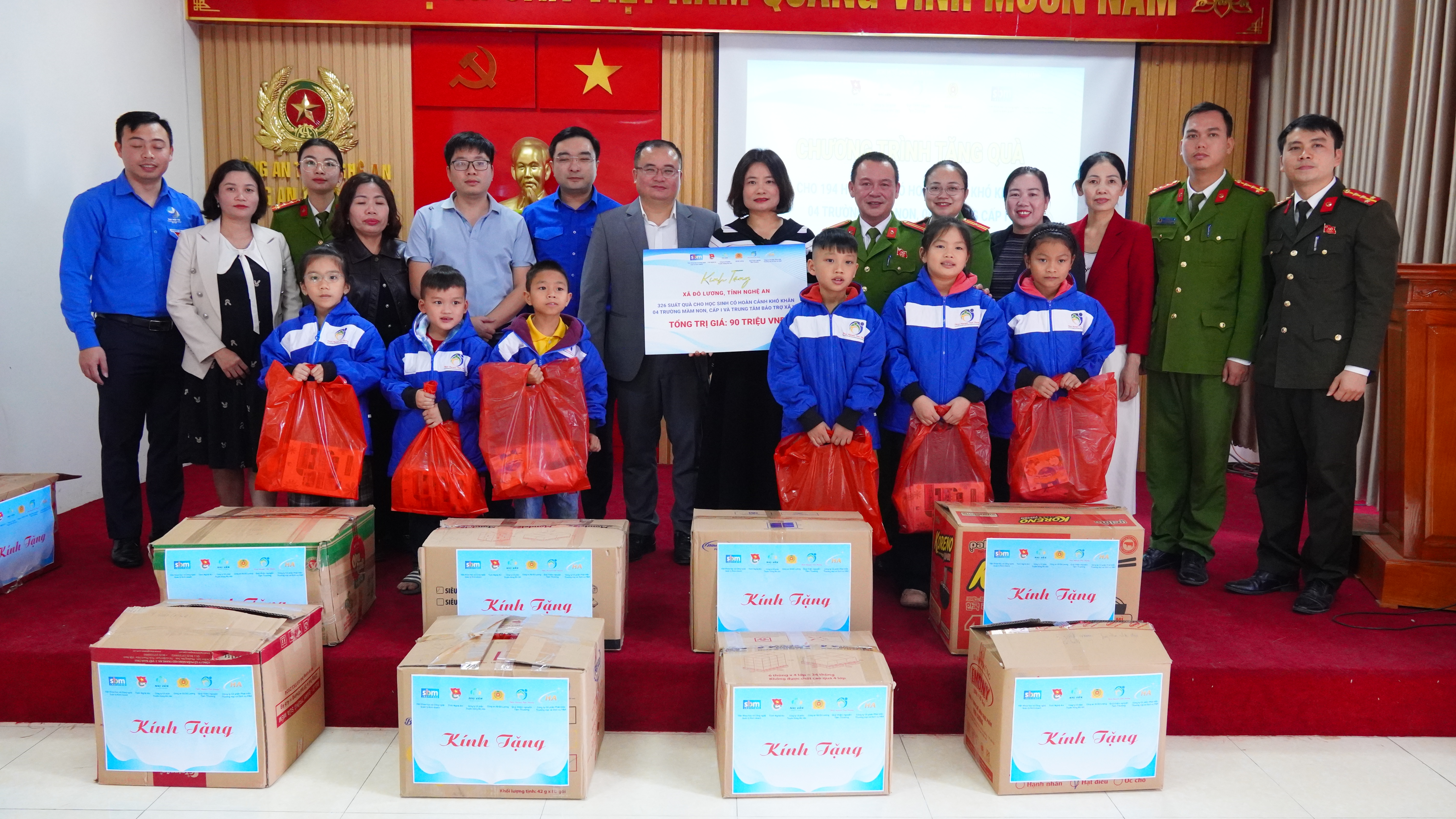 Tiếp tục hành trình, đoàn đã đến với xã Đô Lương để hỗ trợ 206 học sinh có hoàn cảnh khó khăn thuộc 04 trường Mầm non và 04 trường Tiểu học. Sự chào đón nồng hậu của chính quyền và nụ cười rạng rỡ của các em học sinh khi cầm trên tay phần quà thiết thực là minh chứng rõ nét nhất cho thành công của chương trình.